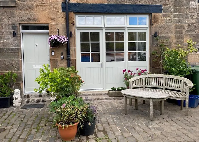 1-room 7A The Mews - Cottage In The City includes a patio and is located approximately a 5-minute ride from Princes Street Gardens. The apartment offers modern facilities, such as Wi-Fi and essentials like a car park for car travellers.
