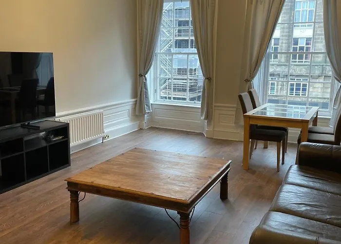 The spacious 100 m^2 City Centre Large 2 Bedroom Apartment For 5 People provides swift access to various city landmarks, such as The Royal Bank of Scotland, located around 5 minutes' walk away.
