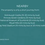 Located 2.5 km from the historic fortress "Edinburgh Castle", the spacious Parking - Sleep 3 - 1 Bedroom - Easy Access Edinburgh apartment is a 5-minute drive from a top family-friendly place like the large parkland Edinburgh Zoo.
