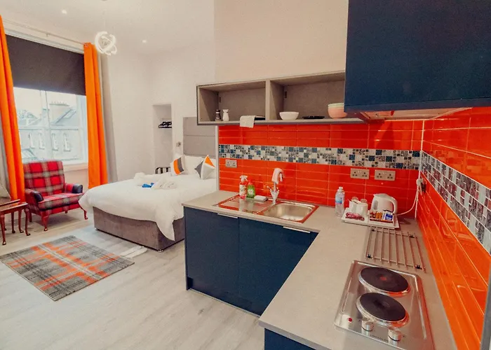 El Museo Dynamic Earth y el Museo de Escocia están a 2 km de y a 2,1 km de esta pensión. El hotel ofrece proximidad a lugares de interés natural como el Real Jardín Botánico de Edimburgo (4 km) y el Parque de Holyrood (2,2 km). Los Jardines de la Calle de los Príncipes está a unos 10 minutos en coche del hotel Mayfield Suites Edimburgo. La parada de autobús East Savile Road está a unos cuantos pasos del lugar. Debido a su ubicación a 25 km del Aeropuerto Edimburgo, se tarda solo 22 minutos en coche para llegar allí.