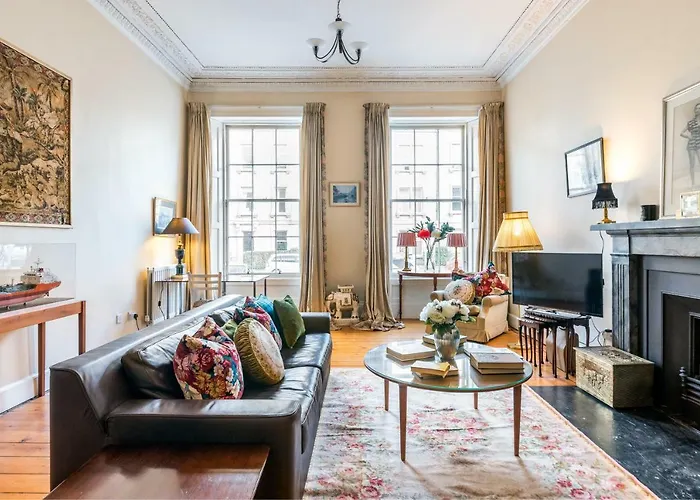 Dit 100 m^2 grote appartement is te vinden in de Broughton wijk, binnen 2 km van de Schotse Nationale Galerie van Moderne Kunst. Te voet bent u binnen 15 minuten in het centrum van Edinburgh.