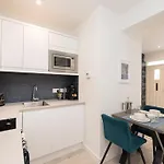 Dit appartement biedt een zitruimte die zijn ingericht met een bank en een bureau, samen met moderne voorzieningen zoals een flatscreen TV met satellietzenders. De veiligheidsvoorzieningen op de kamer bestaan uit rookmelders. De accommodatie bevat 1 badkamer, die een apart toilet en een douche biedt. Je vindt er ook een droger en handdoeken.